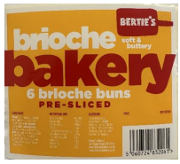 We have been alerted by Bertie’s Bakery that it is recalling its Brioche Buns Pre-sliced from sale because they may contain egg which is not correctly declared on the ingredient label.