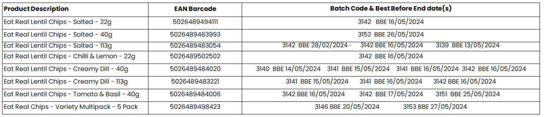 We have been alerted by the Food Standards Agency that Warp Snacks is recalling its Eat Real Lentil Chips Range from sale because they may contain levels of gluten above the amount stated on the back of the pack.