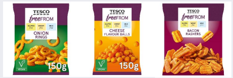 Product Name: Various Tesco Free From Crisps – Onion Rings, Cheese Flavour Balls and Bacon Rashers